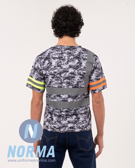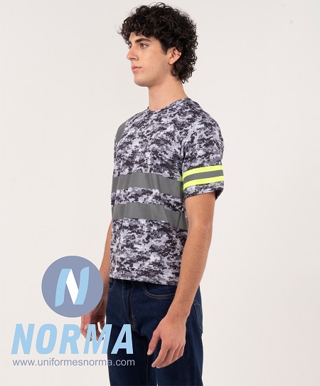 Playera cuello redondo manga corta alta reflectividad Pixel. Playera de trabajo con tecnología añadida esta confeccionada en tela de microfibra Pixel con aditivos que le otorgan los siguientes beneficios: ligera, cómoda, no decolora ni con las lavadas o con el sol, fresca gracias a su tecnología Dry Tech que absorbe la humedad y la evapora, altamente transpirable ya que disipa el calor del cuerpo con facilidad, suave al tacto y protección UV 10%.